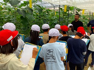 5年生が総合学習の一環として、スマート農業について調べ学習に行ってきました。スマート農業とは、情報およびデータ技術を利用して生産システムと運営を最適化する農業のことで、白根北アグリセンターに行き、色々と教えていただきました。帰りには、白根のブランド野菜「しろねきゅうり王子」をいただいてきました。