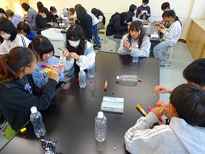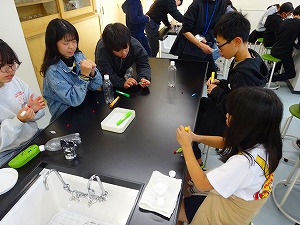 クラブ活動が行われました。理科クラブでは、「浮沈子」づくりを行いました。アルキメデスとパスカルの原理を用いた理科工作に、わくわくしながら取り組みました。ペットボトルを握るだけで動くたれ瓶の動きに偉大な科学者の原理が関係していることを知り、最後は10秒間静止できるかにチャレンジして楽しみました。