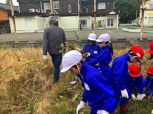 3年生が春から育ててきた大豆の収穫に出かけてきました。全員で力を合わせてたくさんの大豆を収穫できました。収穫してきた大豆は、グラウンドのわきにはざがけして天日で乾燥させます。お味噌づくりに使用する予定です。今からおいしいお味噌ができるのが楽しみです。