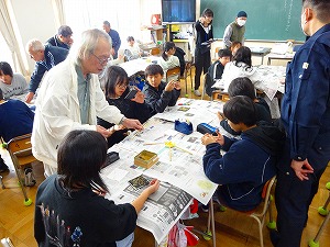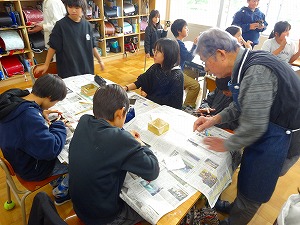 5年生が蒔絵体験に挑戦しました。自分で考えた絵を漆の塗られた板に専用の絵の具で描き、その上から金粉を載せて完成です。金粉は本物の金であることを教えていただき、子どもたちも目を輝かせながら蒔絵体験に取り組みました。講師として来校頂いた吉運堂の皆さんや地域の蒔絵名人の皆様、大変ありがとうございました。