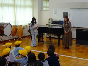 絵本作家の「あだち あさみ 様」がおむすびちゃんと一緒に来校し、休み時間に子どもたちに読み聞かせをしていただきました。子どもたちは、おむすびちゃんの登場に大喜びで、作者ご本人による読み聞かせにも夢中になって聞いていました。絵本もご寄贈いただき、明日から子どもたちにとって人気の絵本となります。あだちあさみ様、大変ありがとうございました。