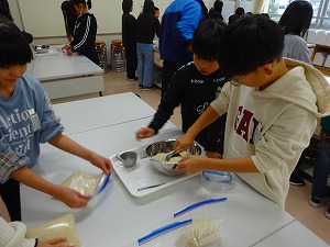 5年生が、昨年の5月から学校田で育ててきたお米を今日は仕分けをして、それぞれが持ち帰りました。秋に収穫した際には、家庭科の調理実習で全員がおいしくいただきました。自分たちで田植えや生育を観察してきたお米なので、おいしさは格別です。今日は丁寧にはかりで測ってジップロックに詰めました。おにぎりにして食べようかなという声がたくさんありました。