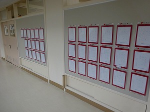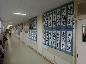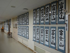 23日(金)まで校内書初め展を行っています。6年生「白銀の道」、5年生「富士山」、4年生「光る空」、3年生「お正月」、1・2年生硬筆作品と、一人一人が丁寧に書初めを行いました。保護者の皆様にも公開しておりますので、子どもたちの力作をぜひご覧ください。
