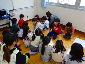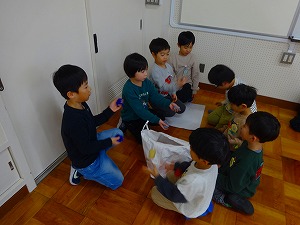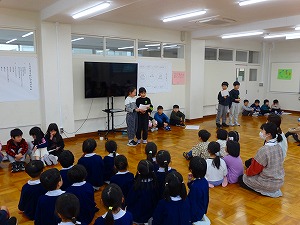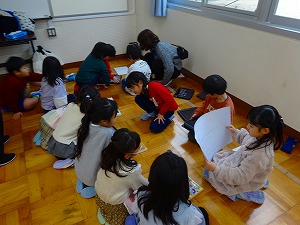 1年生が4月に新1年生となる保育園の園児と交流会を行いました。白根保育園、白根おおぞら保育園、白根カトリック保育園の三つの園児たちが交流会に参加してくれました。会の中では、遊びのほか、学校の紹介やアサガオの種のプレゼントなども行いました。1年生の子どもたちが、お兄さんお姉さんとなってはりきっている姿がたくさん見られました。新1年生のみなさん、みんなさんのご入学を全校のみんなが待っていますよ!