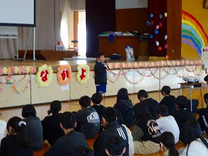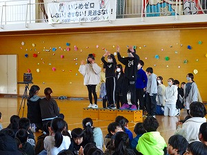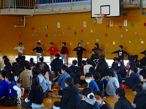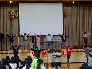 6年生ありがとう集会が行われました。先週学年・学級閉鎖があり延期されていたのですが、今日は、全校が揃うタイミングで対面にて行いました。5年生が中心となって準備を進めてきてくれていて、卒業生の6年生がニコニコと笑顔となる温かな会を開くことができました。6年生の入場では、お立ち台がありグループごとにポーズを決めての入場でした。また、オープニングは1年生によるかわいいダンスでした。なかよし班グループごとのプレゼントン贈呈やクイズもあり、とても盛り上がりました。