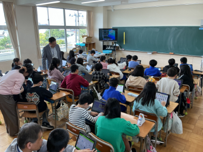 5年生は、「キャンバ」というアプリを使って、係カードの作成に挑戦です。ICT支援員の方もお手伝いをしてくださいました。