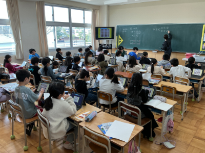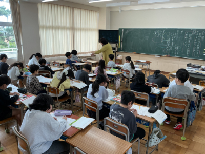 4年生は、物語文の登場人物の気持ちを考えていました。学習の最後には音読劇をするそうです。