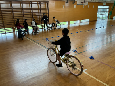 その自転車を使って3年生が自転車安全教室です。