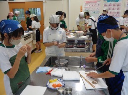 今日の3・4時間目は1年2組は家庭科の授業でした。今日は調理実習です。作る献立は「鮭のホイル焼き」です。生鮭を付け合わせのにんじんやレンコン、こんにゃくなどをいっしょにアルミホイルに包んで焼きます。 …