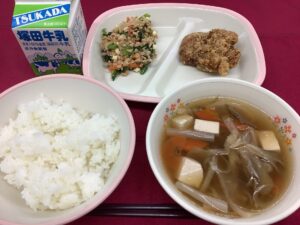 🔶今日の給食🔶 ごはん、鶏肉のカレー揚げ チーズ入きりざい、舞茸けんちん汁 牛乳 今日は臼井小学校のリクエスト献立です。唐揚げにチーズ、きのこと好物がいっぱいです!