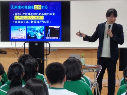 3年生は5時間目、南区の区づくり事業の一つ「未来創造教室」で生き方講演会を行いました。講師を務めてくださいったのは、市内にある明倫短期大学の植木准教授様です。「明るい未来の社会と自分をソウゾウしてみ …