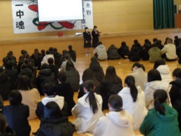 朝の暗い曇り空は生徒が登校するころには青空に変わりました。明日は晴天で気温が高くなる予報です。冬の気持ち良い晴天を楽しめそうです。 今朝は生徒長会を行いました。全校生徒が体育館に集まりました。最初 …
