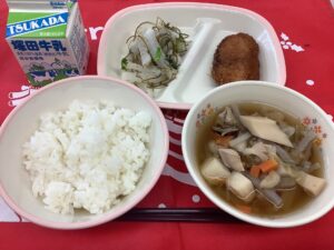 🔶今日の給食🔶 ごはん、ぶりたれカツ、ごま入り大根漬け のっぺい汁、牛乳 豚肉や鶏肉のたれカツはよく提供されますが、今日のたれカツはぶり!脂ののったぶりは食べ応えがあります。