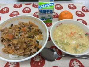 🔶今日の給食🔶 761kcal ごはん、豚キムチ丼の具 中華風コーン玉子スープ みかん、牛乳 「全国学校給食週間」に先駆けて、今週は白根学校給食センターの「給食週間」です。 初日の今日は「食育の日 …