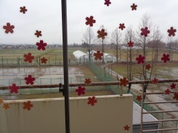 4時間目の合唱練習が終わり、教室へ戻った3年生。窓を見るとたくさんの桜の花が咲いています。 3年生の教室が空いている時間に、1年生の特別支援学級の生徒と先生、支援員さんで貼ったものです。春が訪れた …