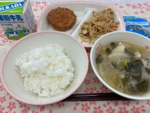🔶今日の給食🔶 816kcal ごはん、里芋コロッケ 切り干し大根の炒め煮、呉汁 乾燥小魚、牛乳 今日のコロッケはねっとり感がおいしい里芋です。すりつぶした大豆の入った呉汁と合わせて、あっさりだけど …