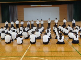 後期始業日の今日は、授業が始まる前に後期始業式を行いました。校歌斉唱後、各学年代表生徒が後期の抱負を発表しました。3人とも前期のがんばった成果とそこから見えてきた課題、そしてその課題を克服し、よし一 …