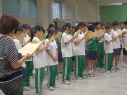 時折小雨の降る曇り空の水曜日です。前期も今日を入れて3日間になりました。 今朝は2学年朝会でした。前期最後の2学年朝会です。学年委員長の元気の良い大きなあいさつの号令で始まりました。 最初に前期 …