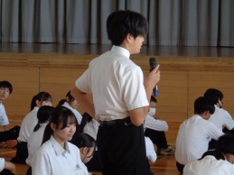 今朝、全校朝会を行いました。体育祭期には全校生徒で集まる機会はたくさんありましたが、制服姿で集まるのは久しぶりで、新鮮な感じがします。 最初に、地域にある神社の夏のお祭りにボランティアとして協力し …