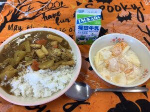 1年生はぐるぐるバットと玉入れを合わせたゲーム。色の箱を何個も開けてようやく連合カラーが決まりました。2年生はボーリングと米袋ジャンプ、そしてけん玉を組み合わせてのゲームです。勝負のカギはけん玉でした。選んだスプレー缶から噴射した色が連合カラーです。3年生は走り、2人3脚でまた走り、いすの脚でできた狭い通路を潜り抜け、3人の先生が扮するモンスターの妨害を避けながらゴール。選んだペットボトルを振ると連合カラーが出てきます。