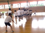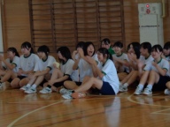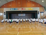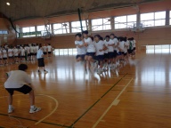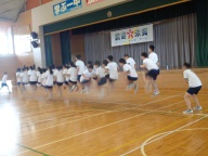 今朝は3学年朝会でした。学年委員会企画・運営の学年レクリエーション「大縄跳び」を行いました。最初に学年委員会から「体育祭で培ったクラスの団結力を合唱コンクールに向けてさらに確かなものにしましょう。またもうすぐ前期も終わりです。みんなで楽しむ機会にしましょう」と呼びかけがあり、大縄跳びの始まりです。