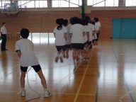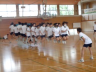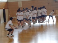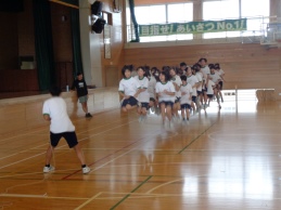 最初は全く跳べる気配がありません。士気が下がりそうになる中、大きな声を出してタイミングを合わせ、次第に跳べるようになってきました。こうなると3年生は強いです。もちまえの団結力を発揮して次々と回数を重ねていきます。