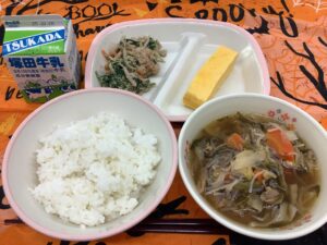 今日は「食育の日」でラッキーにんじんデーです。具だくさんのさつま汁の中に⭐形のにんじんは入っていたでしょうか?
