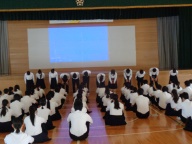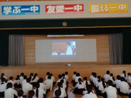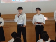今朝は3学年朝会でした。前期最後の学年朝会です。最初に先週に引き続き、前期学年委員を務めた生徒が学年のみんなにメッセージを伝えました。修学旅行、体育祭を中心に様々なことがあった前期。学年みんなが協力し、助け合いながら一つ一つを成功に導き、成長につながりました。学年委員はその充実感や達成感、学年の一体感への喜びを感じました。そして学年みんなへの感謝を伝えました。
