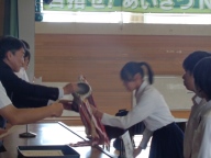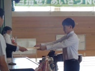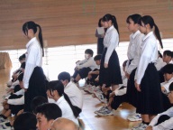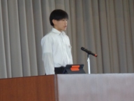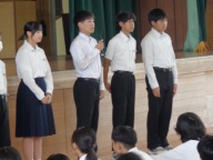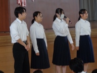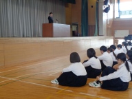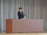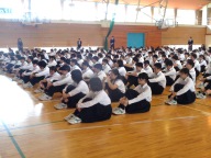 終業式では、校歌斉唱の後、生徒会長が「前期生徒会活動の総括」を全校のみんなに伝えました。充実した活動の様子がうかがえ、後期への意欲を感じました。熊谷校長は各学年それぞれのがんばりと成長を大いに讃え、一中全体で大きく成長できた、素晴らしい前期であったと伝えました。そして生徒一人一人が「後期はこうする、後期はこうなる」を明確に決めて14日の後期始業式に臨むよう伝えました。