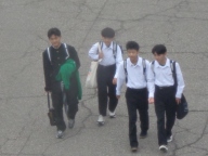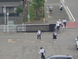 3連休明けの薄曇りの朝です。青空は見えませんが、空気は涼しく、過ごしやすく感じられます。まだシャツやブラウス姿の生徒が大半ですが、秋らしくなってきました。