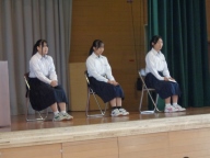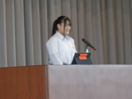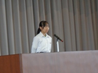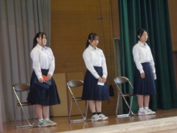 後期始業日の今日は、授業が始まる前に後期始業式を行いました。校歌斉唱後、各学年代表生徒が後期の抱負を発表しました。3人とも前期のがんばった成果とそこから見えてきた課題、そしてその課題を克服し、よし一層の成長を目指す、素晴らしい発表でした。全校生徒が大きな拍手を贈りました。