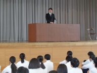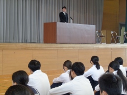 続いて熊谷校長が話をしました。「前期の終業式で素晴らしい前期だったといったけれども、後期はそれをすべての面で超えていこう。一中のみんなにはそれができる。まだまだ伸びることができる。後期を超える素晴らしい学校にしよう。」と呼びかけました。