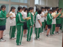 後期スタートの今日も放課後の合唱練習は行われています。各教室や音楽室。ふれあいルーム等から歌声が校舎いっぱいに響き渡っています。練習時間の前半、後半の入れ替わりは歌いながら移動する生徒も少なくなく、さらに歌声が広がっていきます。