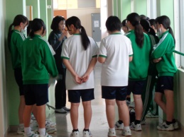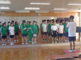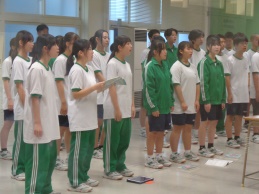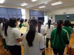 放課後の全校一斉練習の時間、今日も歌声が1階から4階まで、体育館、玄関まで響いています。