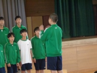 今日の5時間目、1年生は学年全体での合唱練習でした。今日の練習の一番のねらいは「入退場」です。初めての合唱コンクール、初めての白根学習館ラスペックホール。初めて尽くしの1年生は音楽の先生の指示で並び方や移動の仕方を練習しました。集中してしっかり動く1年生。あっという間に並び方を覚え、残った時間は1回ずつ合唱を披露しました。緊張しながらも元気の良い歌声が響きました。