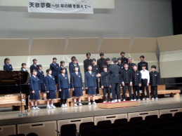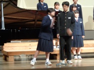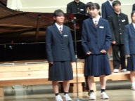 次にリハーサルを行ったのは1年生。初めての合唱コンクール、ラスペックホール。それでも臆することなくのびのびと歌いました。クラスのみんなで一つになって歌うことがとっても楽しそうです。