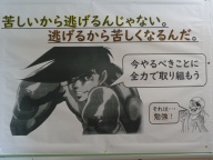 3年生の廊下掲示板には「学習から逃げない」ポスターが掲示されています。さらに授業に集中する取組も始まっています。