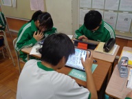 授業は「政治参加のための情報との向き合い方」です。3年後に選挙権を有する生徒にとって政治は決して他人事ではありません。折しも高市総理大臣が就任し1週間、多くの媒体がそのことを取り上げています。授業の先生は、高市総理大臣の「所信表明演説」を取り上げた新聞4紙の「社説」を生徒に送信しました。内容をよく吟味させ、肯定的か否定的かの順位をつけます。それをグループで意見交換しました。クラス全体で共有した後、再度グループで求められる情報との向き合い方を考えました。生徒は自分たちの言葉で「メディアリテラシーを高めることの重要さ」を導き出しました。