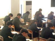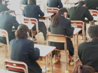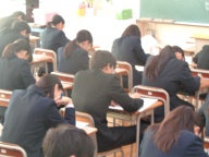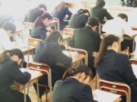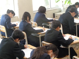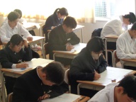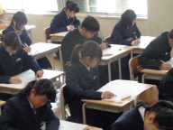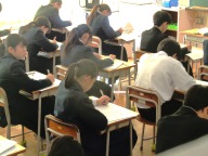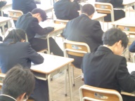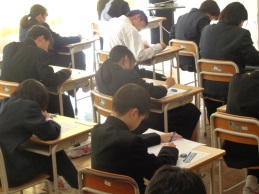 今日は3期テスト2日目。3教科のテストに全校生徒が臨みます。朝の玄関ではテストの内容に関する会話が聞かれるなど、がんばっている様子が窺えます。