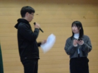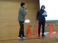 デートDVを取り上げた寸劇は、一中の先生が熱演し、生徒から歓声、拍手が起こりました。