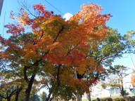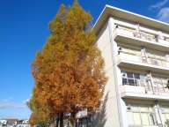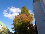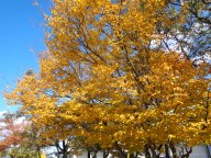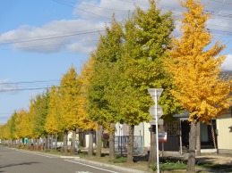 今日は1日爽やかな秋の青空が広がっています。雨が降る日が多かったため、気づきにくかったもですが、広い一中の校地内には様々な樹木が秋に色づいています。校門からまっすぐ伸びる通称「ハートロード」のいちょう並木も秋の日を浴びて黄金色に輝いています。