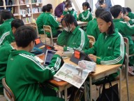 今日の授業は「新聞を活用した授業」です。生徒は様々な新聞のたくさんの記事の中から自分が興味・関心をもった記事を見つけ、その記事についての自分の想いや考えをまとめました。それをグループで発表し合いました。記事は様々で、特集を組まれたものやその時の大きなニュース、あるいは投稿などが取り上げてあります。どこに心を動かされたかを自分の言葉で相手に伝えました。グループの代表がクラス全体にスピーチをした後、グループごとにみんなの想いをまとめました。人が生きる上で大切にしたいこと、見習っていきたいことや物事を見る視点など、様々な学びがまとめられました。