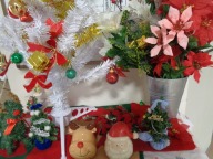 職員・来校者用玄関にはクリスマスツリーとクリスマスの飾りがあります。一中を訪れた人を和ませています。