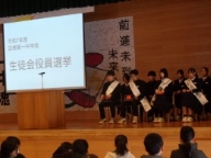 投票前には立会演説会を行いました。どの立候補者もしっかりとした信念とプランがあり、「こういう一中を目指し、これをやっていく」と力強く訴えました。どの責任者も立候補者がいかにリーダーにふさわしいかをわかりやすく、丁寧に伝え、応援しました。