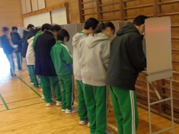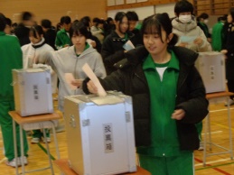 来年度の生徒会長、副会長を選出する生徒会役員選挙を今日の午後実施しました。当初は11月28日に実施予定でしたが、感染症罹患の生徒が多く、一週間延期しての実施でした。罹患した生徒もほとんどが登校でき、選挙に参加できました。
