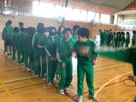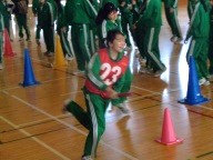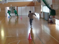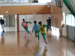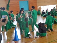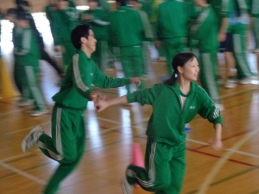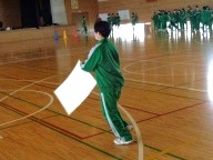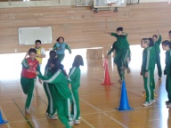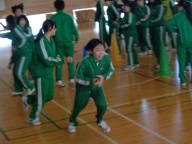 今日の4時間目、3年生は「学年運動会」を行いました。前回の学年朝会でクラス関係なくランダムに編制した4チームに分かれて「全員リレー」「借り人競争」「大縄跳び」の3競技で競い合いました。