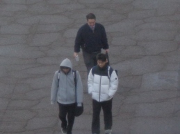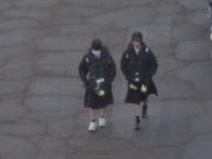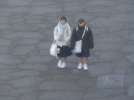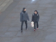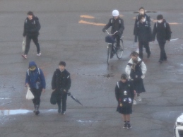 生徒が登校する頃は降雨や降雪がなく、雲の間から青空が見られます。しかし、冷たい風が強く吹き、凍える寒さです。暖かい環境を作っていきます。