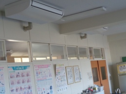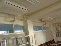 10月から特別教室のエアコン設置工事が行われていました。12月になり、工事は終了し、すでに設置済みの音楽室を除く各特別教室に設置されました。