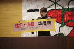 熊谷校長は「『心を整える』冬休みを過ごせたでしょうか。今日から始まる後期後半は、希望する進路実現、最上級生・先輩になることに向けて一中全体がしっかりと頑張れる期間にしましょう。50周年の最後は、成長した素晴らしい姿での卒業式、終業式をやり遂げること。今日から頑張ろう!」と呼びかけ、励ましました。