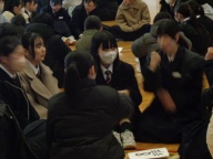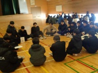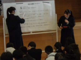 今日の生徒朝会は明後日実施する「創立50周年記念校内球技大会」の説明とグループミーティングです。最初に主催する体育委員会が球技大会の目的やルール、これから行うチーム編成について説明しました。今回の球技大会は創立50周年の記念の年度に、一中のみんながもっと仲良くなり、協働性を伸ばしていくことです。学年やクラスを超えた異学年混合グループを編成し、フットサルで競い合います。